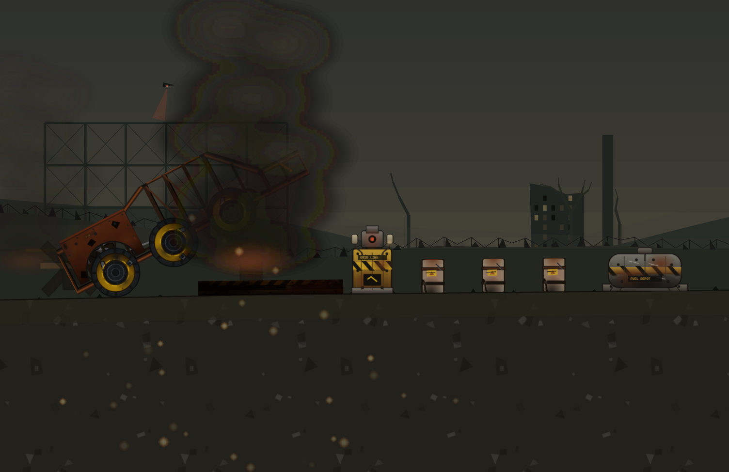 Build a scrapyard war-machine from rusted parts. Deploy. Watch it ride or blow up.